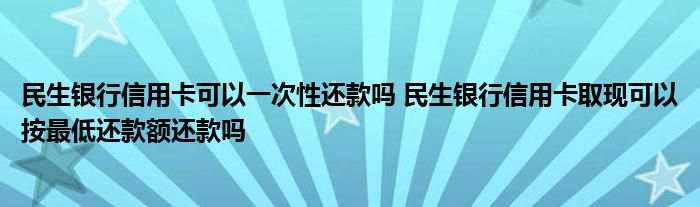 导读 大家好,小元来为大家解答问题。民生银行信用卡可以一次性还款吗,民生银行信用卡取现可以按最低还款额还款吗这个很多人还不知道,现在让我