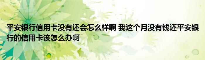 导读 大家好,小元来为大家解答问题。平安银行信用卡没有还会怎么样啊,我这个月没有钱还平安银行的信用卡该怎么办啊这个很多人还不知道,现在让