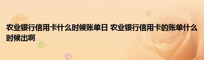 导读 大家好,小元来为大家解答问题。农业银行信用卡什么时候账单日,农业银行信用卡的账单什么时候出啊这个很多人还不知道,现在让我们一起来了