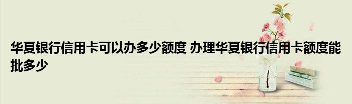 导读 大家好,小元来为大家解答问题。华夏银行信用卡可以办多少额度,办理华夏银行信用卡额度能批多少这个很多人还不知道,现在让我们一起来了解