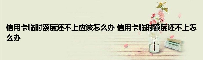 导读 大家好,小元来为大家解答问题。信用卡临时额度还不上应该怎么办,信用卡临时额度还不上怎么办这个很多人还不知道,现在让我们一起来了解下