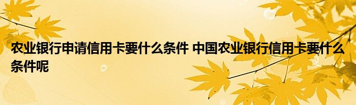 导读 大家好,小元来为大家解答问题。农业银行申请信用卡要什么条件,中国农业银行信用卡要什么条件呢这个很多人还不知道,现在让我们一起来了解