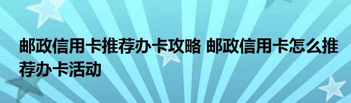 导读 大家好,小元来为大家解答问题。邮政信用卡推荐办卡攻略,邮政信用卡怎么推荐办卡活动这个很多人还不知道,现在让我们一起来了解下吧!