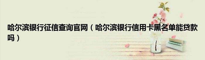导读 大家好,小元来为大家解答问题。哈尔滨银行征信查询官网,哈尔滨银行信用卡黑名单能贷款吗这个很多人还不知道,现在让我们一起来了解下吧!