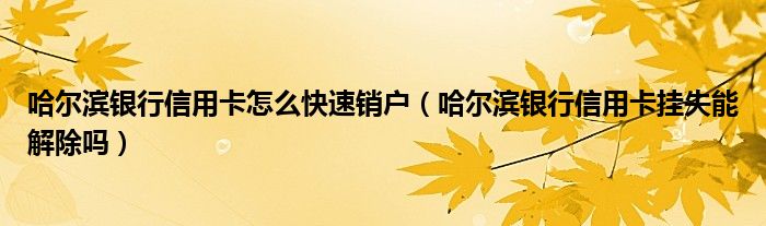 导读 大家好,小元来为大家解答问题。哈尔滨银行信用卡怎么快速销户,哈尔滨银行信用卡挂失能解除吗这个很多人还不知道,现在让我们一起来了解下