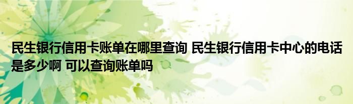 导读 大家好,小元来为大家解答问题。民生银行信用卡账单在哪里查询,民生银行信用卡中心的电话是多少啊,可以查询账单吗这个很多人还不知道,现