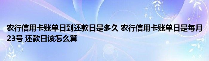 导读 大家好,小元来为大家解答问题。农行信用卡账单日到还款日是多久,农行信用卡账单日是每月23号,还款日该怎么算这个很多人还不知道,现在让