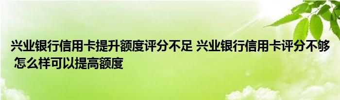 导读 大家好,小元来为大家解答问题。兴业银行信用卡提升额度评分不足,兴业银行信用卡评分不够,怎么样可以提高额度这个很多人还不知道,现在让