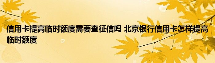 导读 大家好,小元来为大家解答问题。信用卡提高临时额度需要查征信吗,北京银行信用卡怎样提高临时额度这个很多人还不知道,现在让我们一起来了
