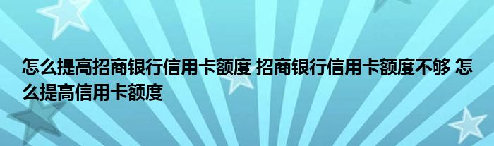 大家好,小元来为大家解答问题。怎么提高招商银行信用卡额度,招商银行信用卡额度不够,怎么提高信用卡额度这个很多人还不知道,现在让我们一起来了解下吧!