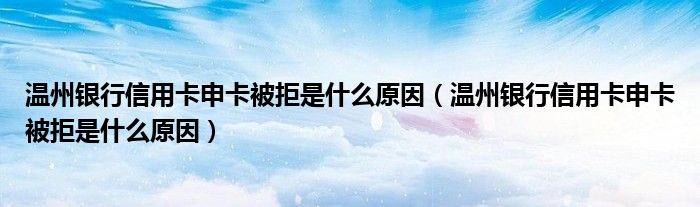 导读 大家好,小元来为大家解答问题。温州银行信用卡申卡被拒是什么原因,温州银行信用卡申卡被拒是什么原因这个很多人还不知道,现在让我们一起