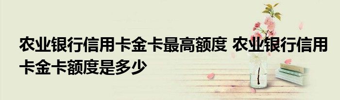 导读 大家好,小元来为大家解答问题。农业银行信用卡金卡最高额度,农业银行信用卡金卡额度是多少这个很多人还不知道,现在让我们一起来了解下吧