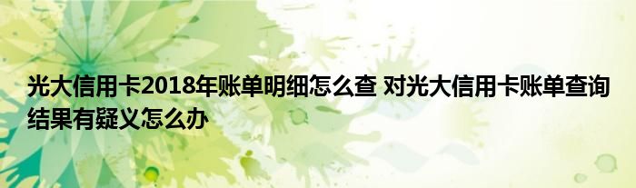 导读 大家好,小元来为大家解答问题。光大信用卡2018年账单明细怎么查,对光大信用卡账单查询结果有疑义怎么办这个很多人还不知道,现在让我们一