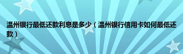 导读 大家好,小元来为大家解答问题。温州银行最低还款利息是多少,温州银行信用卡如何最低还款这个很多人还不知道,现在让我们一起来了解下吧!