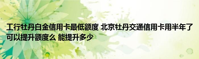 大家好,小元来为大家解答问题。工行牡丹白金信用卡最低额度,北京牡丹交通信用卡用半年了可以提升额度么,能提升多少这个很多人还不知道,现在让我们一起来了解下吧!