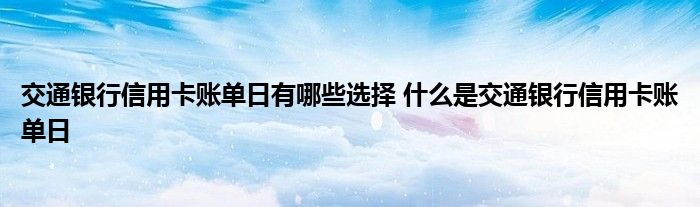 导读 大家好,小元来为大家解答问题。交通银行信用卡账单日有哪些选择,什么是交通银行信用卡账单日这个很多人还不知道,现在让我们一起来了解下
