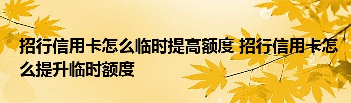 导读 大家好,小元来为大家解答问题。招行信用卡怎么临时提高额度,招行信用卡怎么提升临时额度这个很多人还不知道,现在让我们一起来了解下吧!