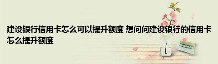 导读 大家好,小元来为大家解答问题。建设银行信用卡怎么可以提升额度,想问问建设银行的信用卡怎么提升额度这个很多人还不知道,现在让我们一起