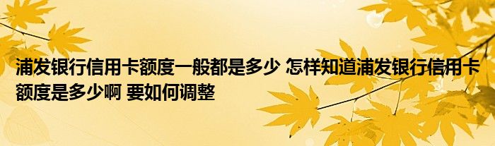导读 大家好,小元来为大家解答问题。浦发银行信用卡额度一般都是多少,怎样知道浦发银行信用卡额度是多少啊,要如何调整这个很多人还不知道,现