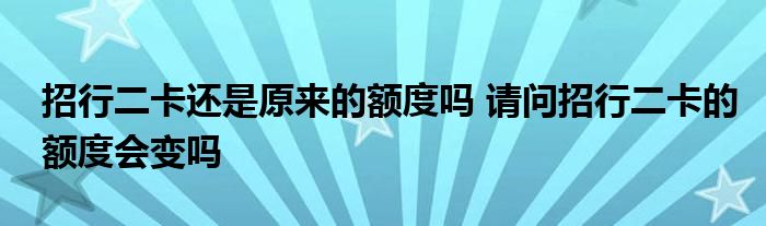 导读 大家好,小元来为大家解答问题。招行二卡还是原来的额度吗,请问招行二卡的额度会变吗这个很多人还不知道,现在让我们一起来了解下吧!