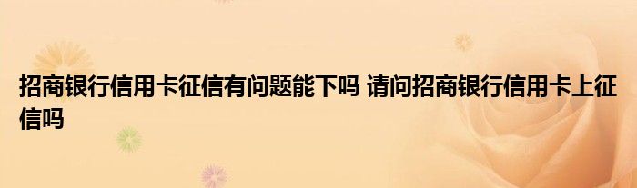 大家好,小元来为大家解答问题。招商银行信用卡征信有问题能下吗,请问招商银行信用卡上征信吗这个很多人还不知道,现在让我们一起来了解下吧!