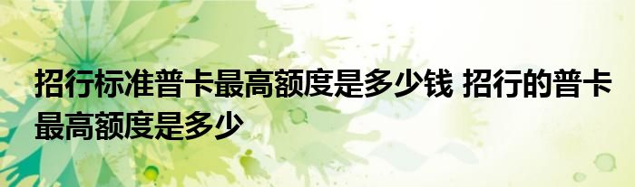 导读 大家好,小元来为大家解答问题。招行标准普卡最高额度是多少钱,招行的普卡最高额度是多少这个很多人还不知道,现在让我们一起来了解下吧!