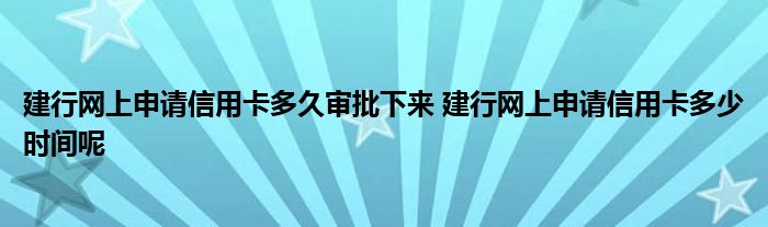 导读 大家好,小元来为大家解答问题。建行网上申请信用卡多久审批下来,建行网上申请信用卡多少时间呢这个很多人还不知道,现在让我们一起来了解