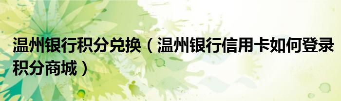 大家好,小元来为大家解答问题。温州银行积分兑换,温州银行信用卡如何登录积分商城这个很多人还不知道,现在让我们一起来了解下吧!