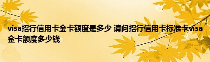 导读 大家好,小元来为大家解答问题。visa招行信用卡金卡额度是多少,请问招行信用卡标准卡visa金卡额度多少钱这个很多人还不知道,现在让我们一