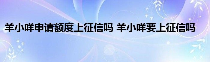 导读 大家好,小元来为大家解答问题。羊小咩申请额度上征信吗,羊小咩要上征信吗这个很多人还不知道,现在让我们一起来了解下吧!