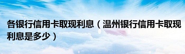 大家好,小元来为大家解答问题。各银行信用卡取现利息,温州银行信用卡取现利息是多少这个很多人还不知道,现在让我们一起来了解下吧!