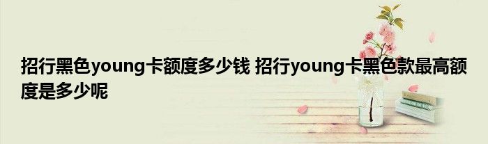 导读 大家好,小元来为大家解答问题。招行黑色young卡额度多少钱,招行young卡黑色款最高额度是多少呢这个很多人还不知道,现在让我们一起来了解