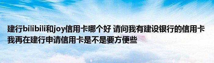 导读 大家好,小元来为大家解答问题。建行bilibili和joy信用卡哪个好,请问我有建设银行的信用卡,我再在建行申请信用卡是不是要方便些这个很多