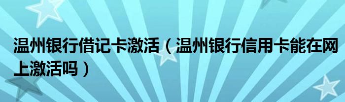 大家好,小元来为大家解答问题。温州银行借记卡激活,温州银行信用卡能在网上激活吗这个很多人还不知道,现在让我们一起来了解下吧!