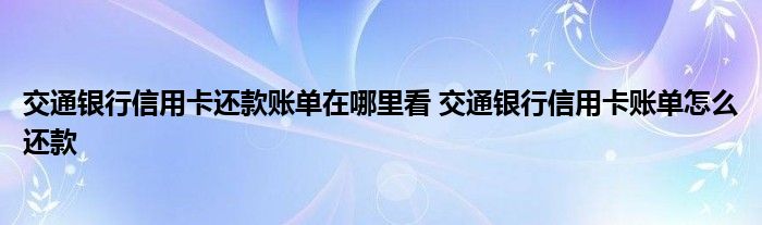 导读 大家好,小元来为大家解答问题。交通银行信用卡还款账单在哪里看,交通银行信用卡账单怎么还款这个很多人还不知道,现在让我们一起来了解下