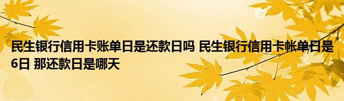 导读 大家好,小元来为大家解答问题。民生银行信用卡账单日是还款日吗,民生银行信用卡帐单日是6日,那还款日是哪天这个很多人还不知道,现在让我