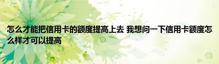 导读 大家好,小元来为大家解答问题。怎么才能把信用卡的额度提高上去,我想问一下信用卡额度怎么样才可以提高这个很多人还不知道,现在让我们一