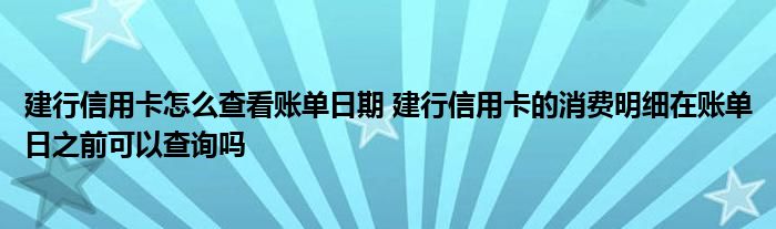 导读 大家好,小元来为大家解答问题。建行信用卡怎么查看账单日期,建行信用卡的消费明细在账单日之前可以查询吗这个很多人还不知道,现在让我们