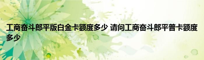 导读 大家好,小元来为大家解答问题。工商奋斗郎平版白金卡额度多少,请问工商奋斗郎平普卡额度多少这个很多人还不知道,现在让我们一起来了解下