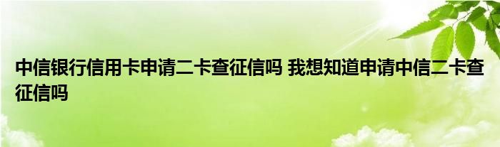 导读 大家好,小元来为大家解答问题。中信银行信用卡申请二卡查征信吗,我想知道申请中信二卡查征信吗这个很多人还不知道,现在让我们一起来了解