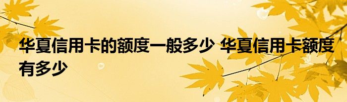 导读 大家好,小元来为大家解答问题。华夏信用卡的额度一般多少,华夏信用卡额度有多少这个很多人还不知道,现在让我们一起来了解下吧!