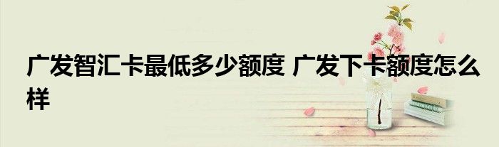 导读 大家好,小元来为大家解答问题。广发智汇卡最低多少额度,广发下卡额度怎么样这个很多人还不知道,现在让我们一起来了解下吧!