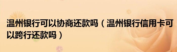 导读 大家好,小元来为大家解答问题。温州银行可以协商还款吗,温州银行信用卡可以跨行还款吗这个很多人还不知道,现在让我们一起来了解下吧!据