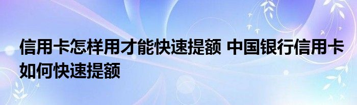 导读 大家好,小元来为大家解答问题。信用卡怎样用才能快速提额,中国银行信用卡如何快速提额这个很多人还不知道,现在让我们一起来了解下吧!