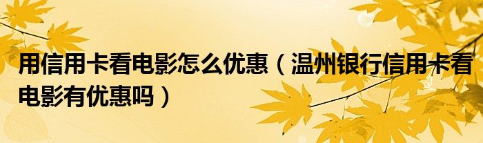 大家好,小元来为大家解答问题。用信用卡看电影怎么优惠,温州银行信用卡看电影有优惠吗这个很多人还不知道,现在让我们一起来了解下吧!