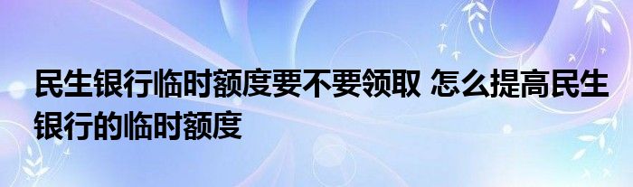 导读 大家好,小元来为大家解答问题。民生银行临时额度要不要领取,怎么提高民生银行的临时额度这个很多人还不知道,现在让我们一起来了解下吧!