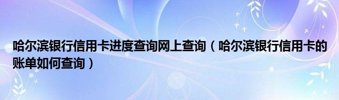 导读 大家好,小元来为大家解答问题。哈尔滨银行信用卡进度查询网上查询,哈尔滨银行信用卡的账单如何查询这个很多人还不知道,现在让我们一起来
