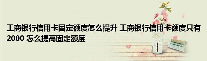 导读 大家好,小元来为大家解答问题。工商银行信用卡固定额度怎么提升,工商银行信用卡额度只有2000,怎么提高固定额度这个很多人还不知道,现在