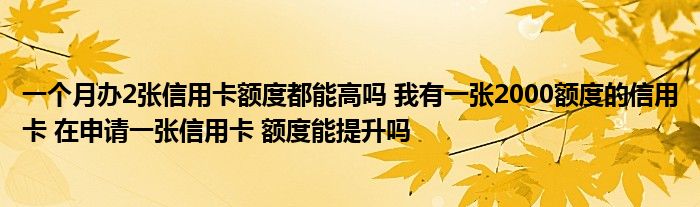 大家好,小元来为大家解答问题。一个月办2张信用卡额度都能高吗,我有一张2000额度的信用卡,在申请一张信用卡,额度能提升吗这个很多人还不知道,现在让我们一起来了解下吧!