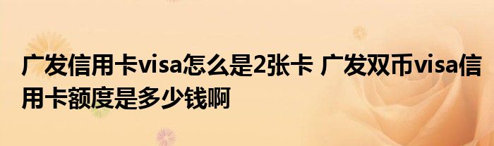 导读 大家好,小元来为大家解答问题。广发信用卡visa怎么是2张卡,广发双币visa信用卡额度是多少钱啊这个很多人还不知道,现在让我们一起来了解下
